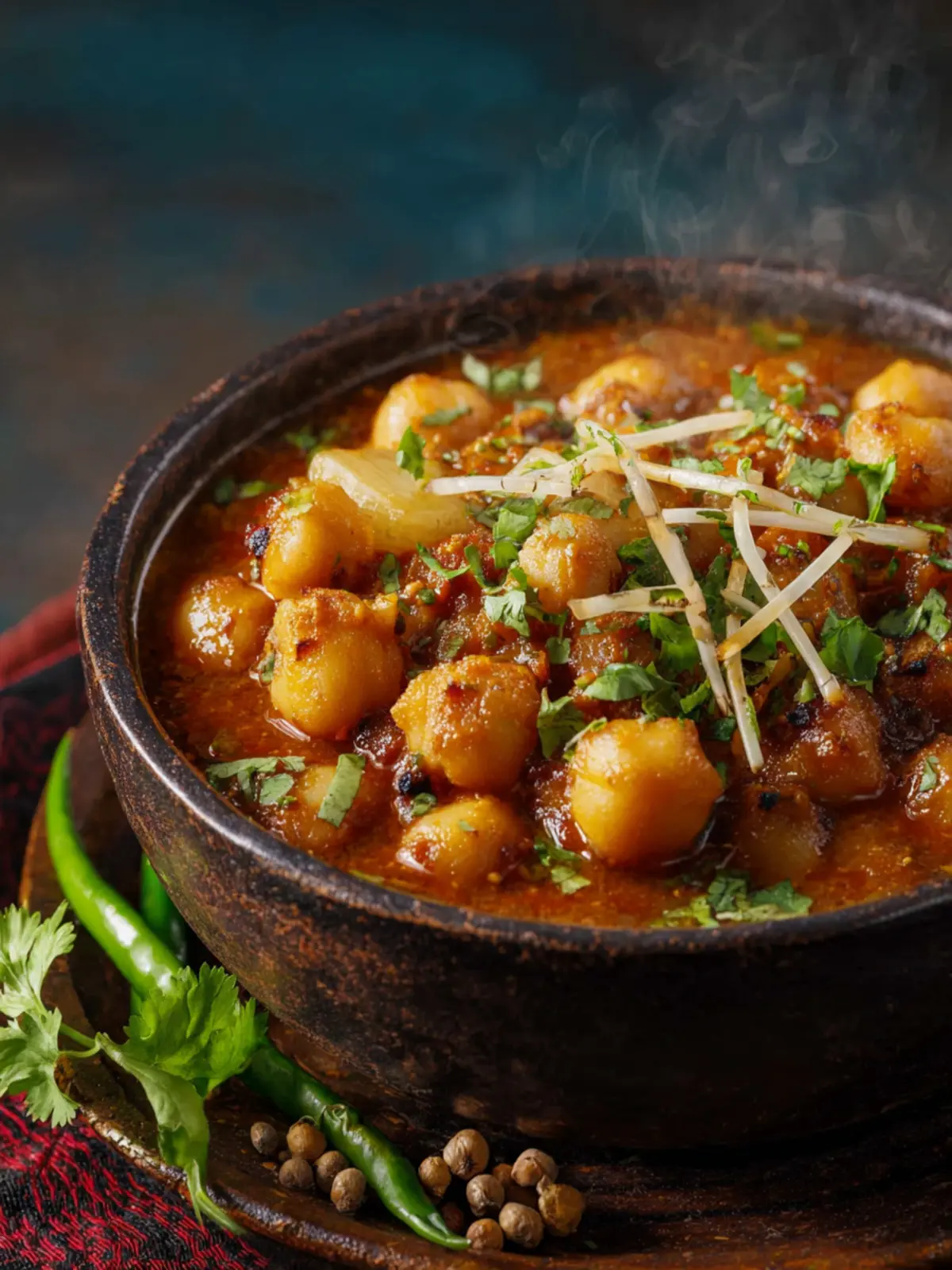 • Nutritional Benefits: Chickpeas are an excellent source of protein and fiber, which makes this dish both satisfying and nutritious. Aloo (potatoes) adds a creamy texture that complements the chickpeas, creating a dish that feels indulgent yet wholesome.