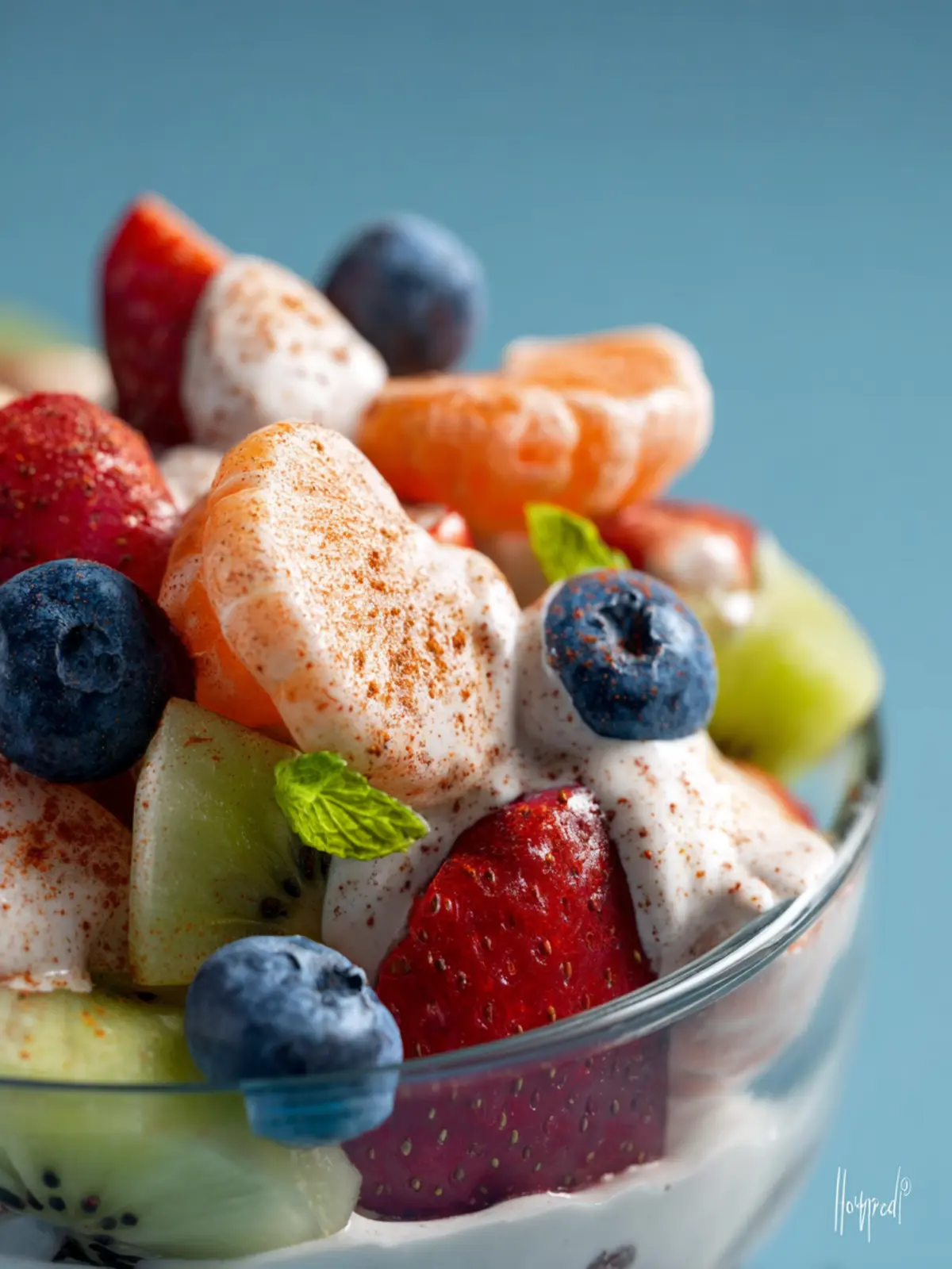 This vibrant and healthy fruit salad combines yogurt, honey, and fresh fruits, making it a perfect dessert or snack.
