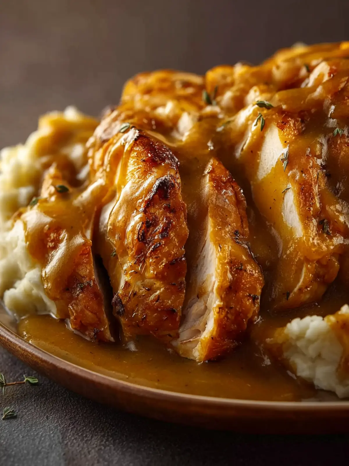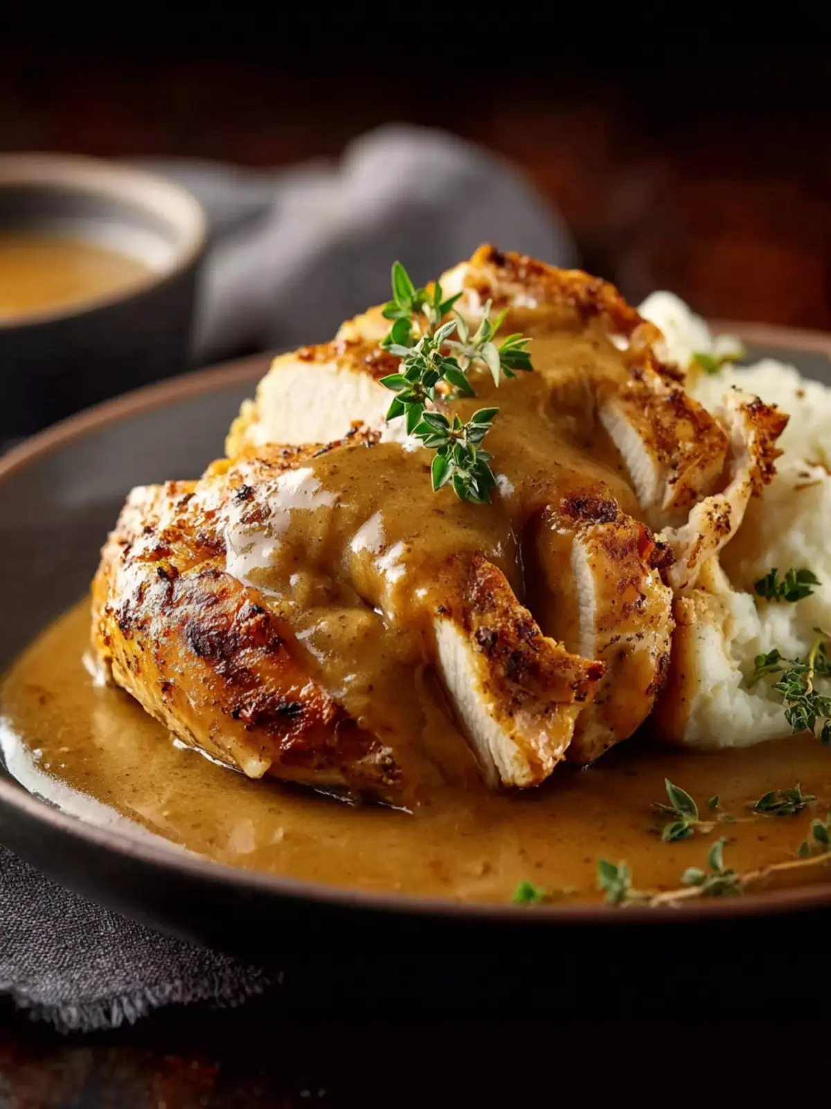 Imagine sinking your fork into tender chicken, perfectly seared and topped with a velvety gravy that adds moisture and flavor. The combination of crispy, golden skin with a savory sauce creates a harmony of textures that will leave your taste buds dancing.