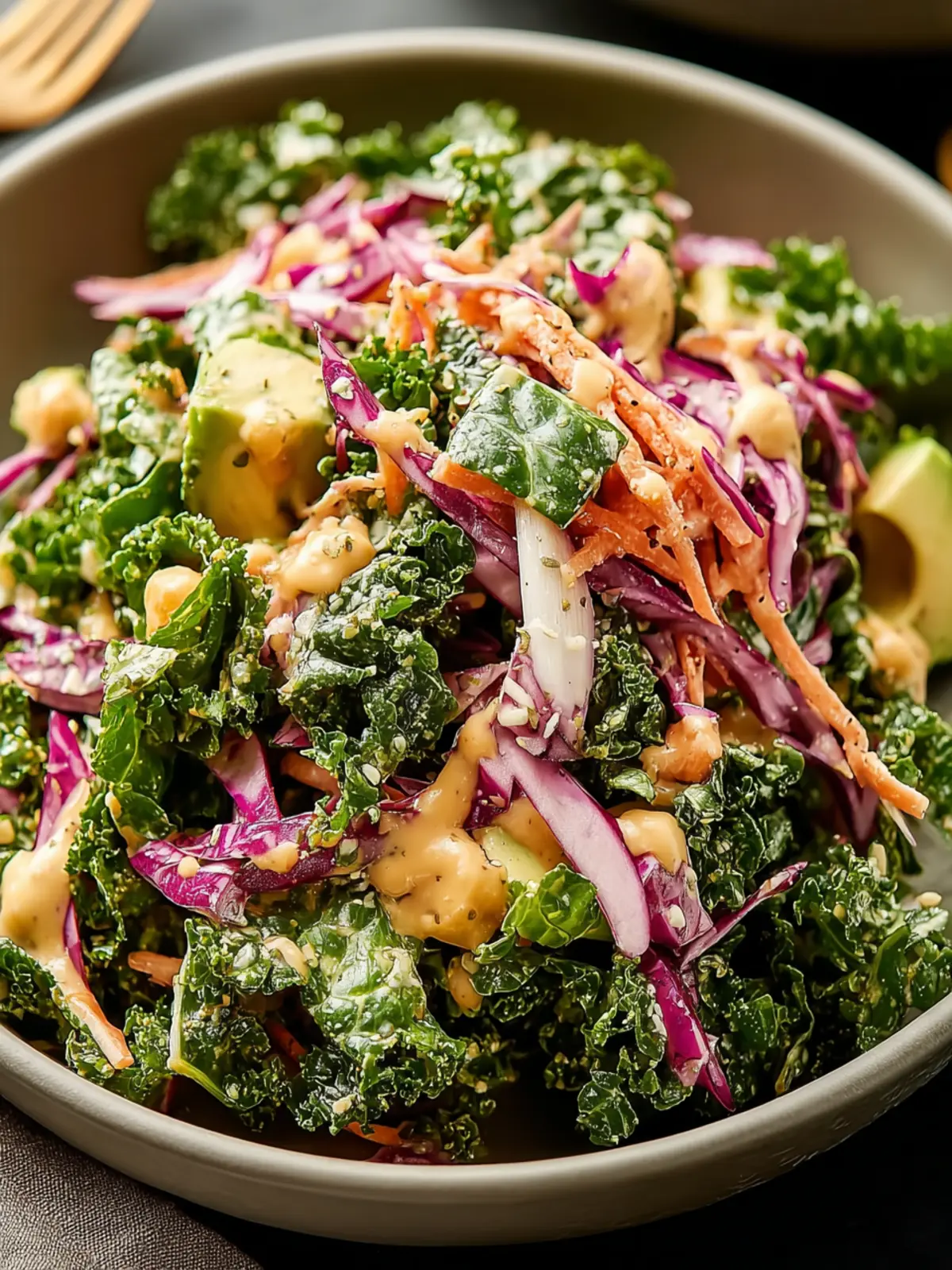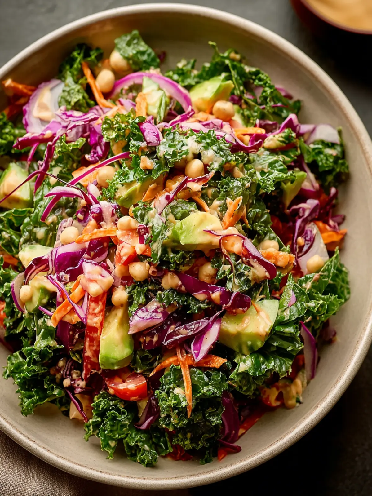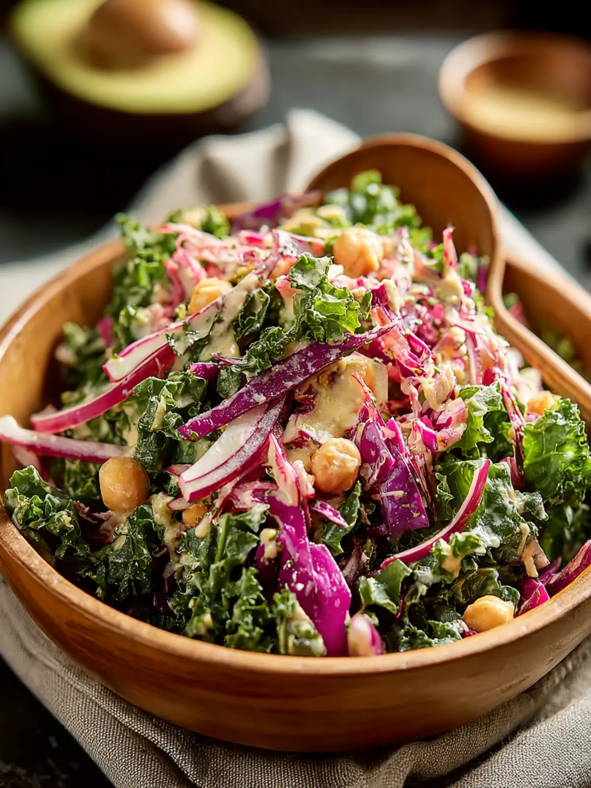 A nutritious and vibrant salad that combines kale, cabbage, and chickpeas with a zesty dressing.