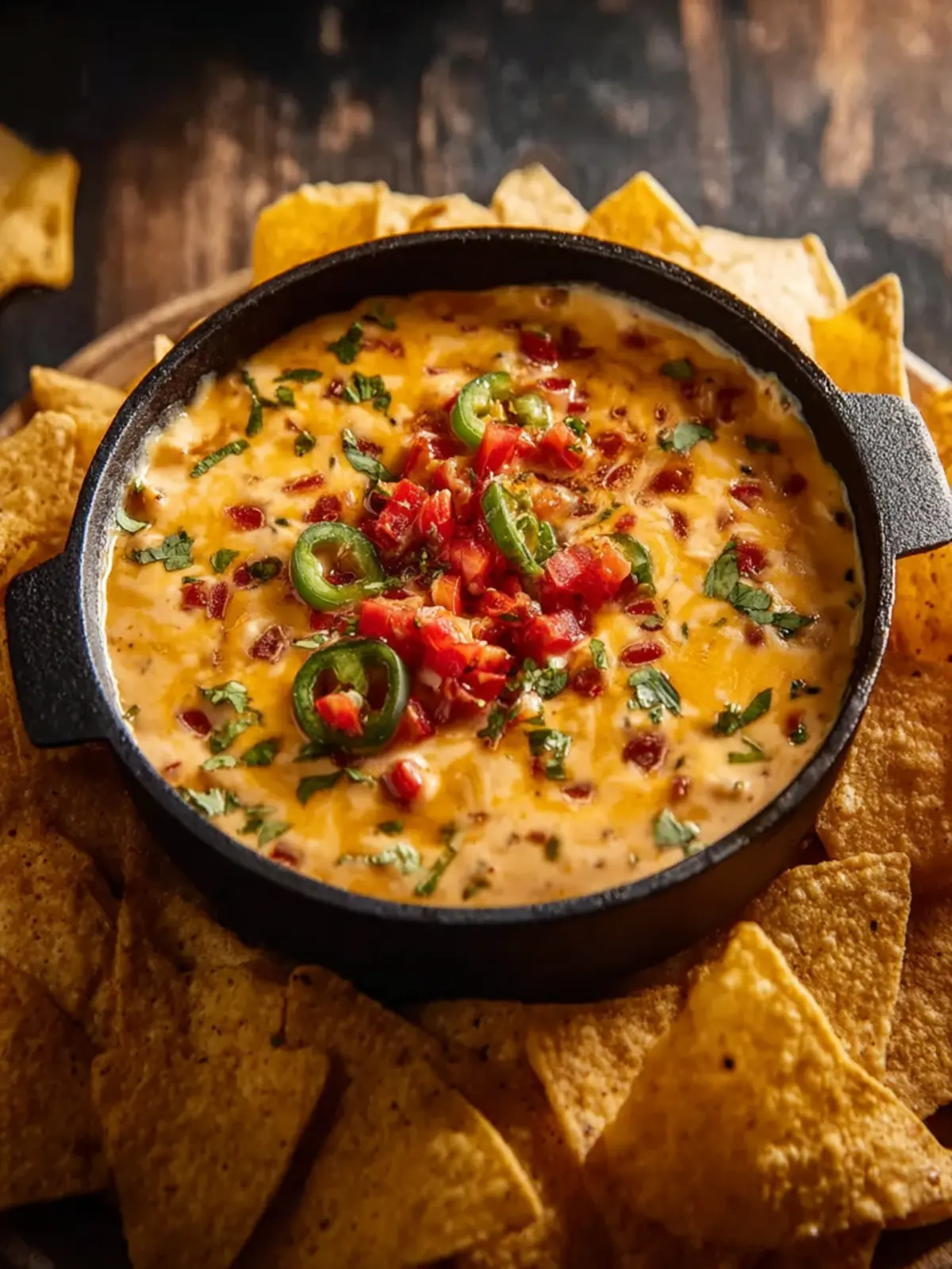Fold in fresh cilantro and diced jalapeño if using. Serve immediately while warm and bubbling. Place the skillet right on the table. Hand everyone a bowl of tortilla chips. Watch how quickly it disappears.