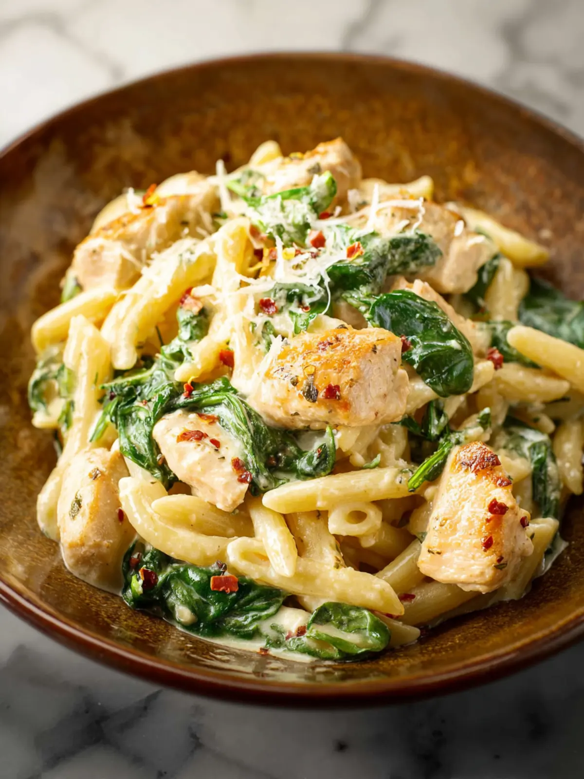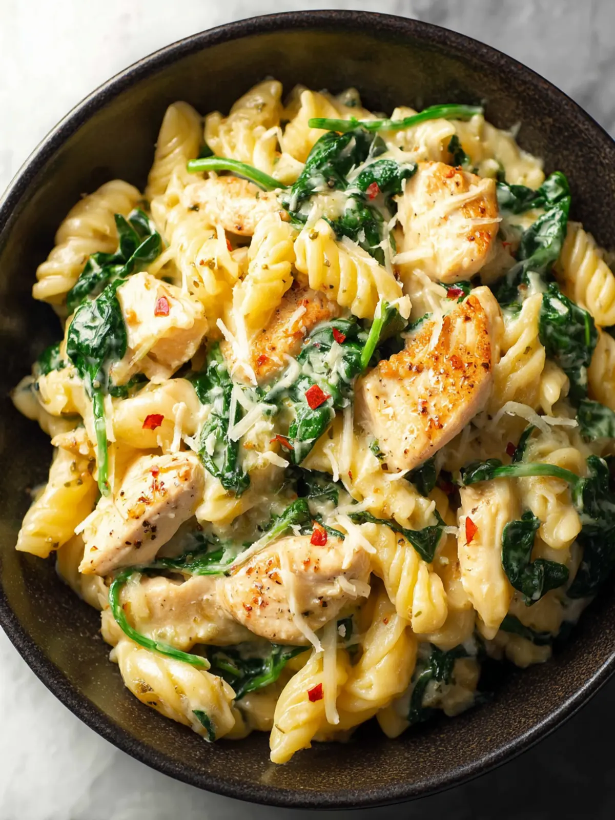 Herb Variations: Fresh basil, thyme, or even a hint of dill can infuse your creamy chicken spinach pasta with a burst of aromatic goodness. Swap in a different herb each time you make it for a new dimension.
