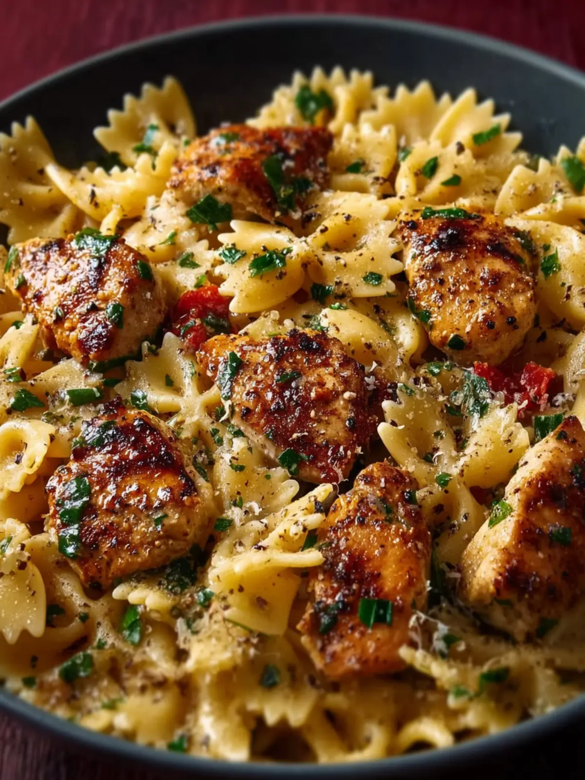 This Garlic Butter Chicken Bowtie Pasta is a delicious and creamy dish that combines tender chicken, garlic, and butter with perfectly cooked bowtie pasta.