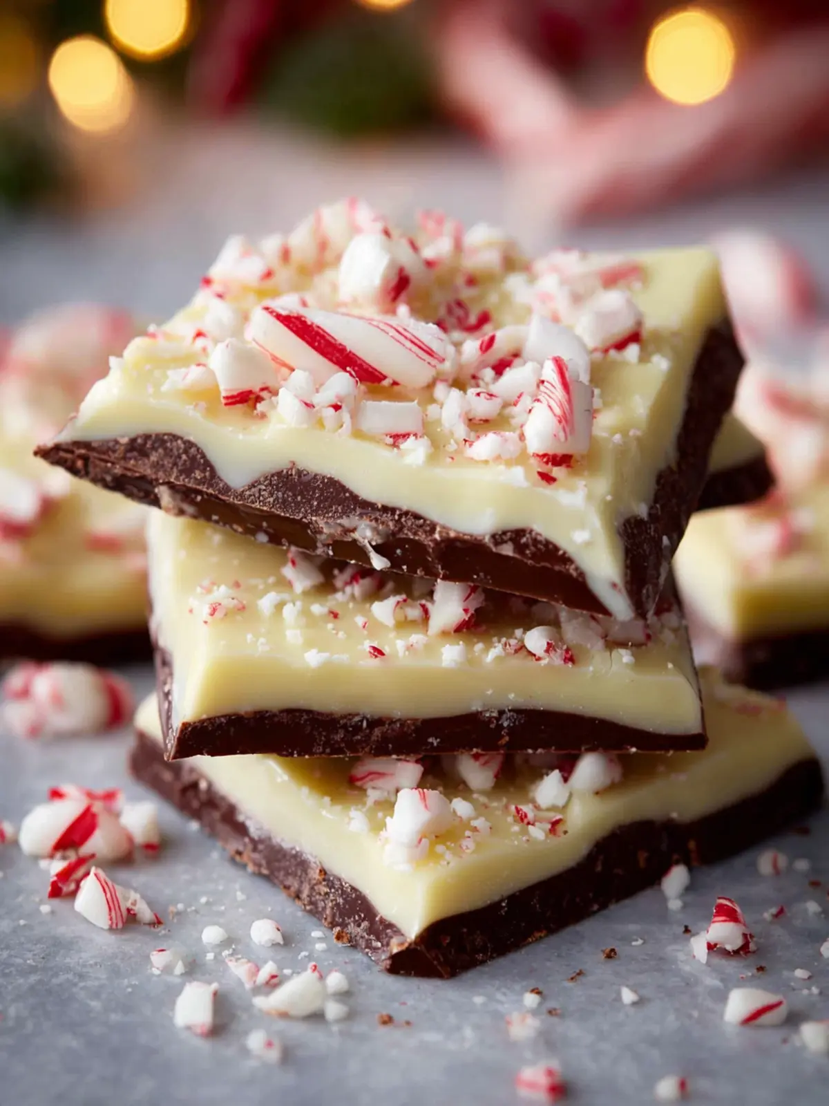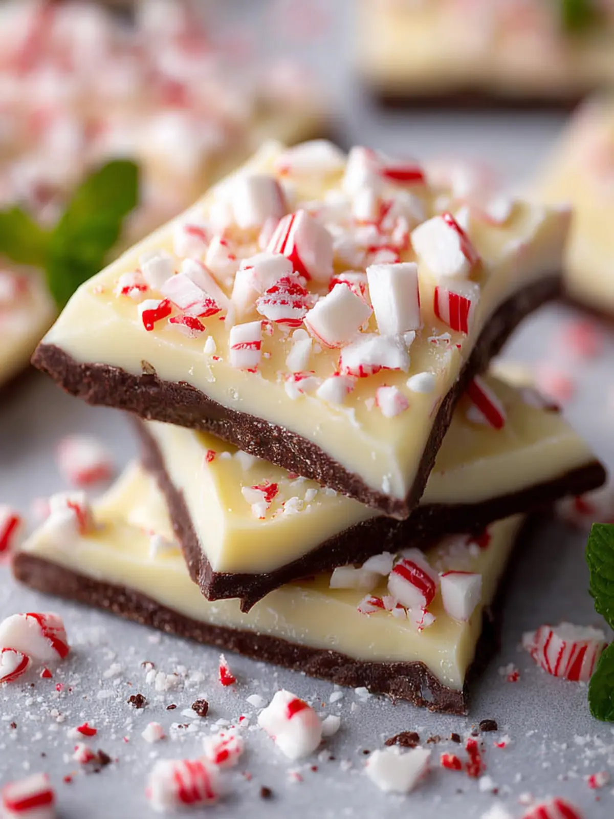 Delicious peppermint bark made with semisweet and white chocolates, perfect for the holiday season.