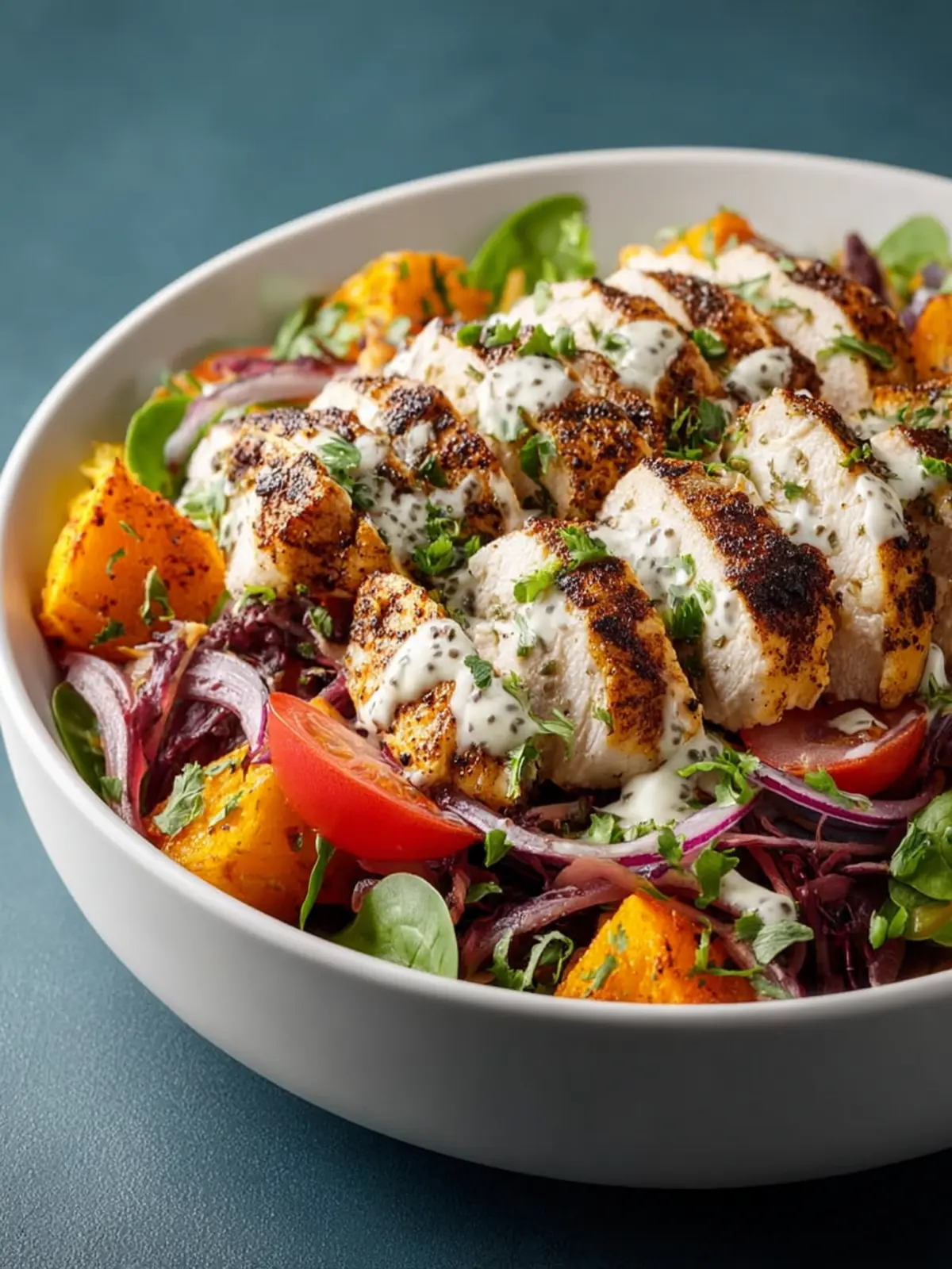 Are you in the mood for something different? Swap out your usual grains for quinoa or farro to add a new texture and flavor dimension. Experiment with different dressings too! A tahini-based dressing or a zesty lime vinaigrette can transform your savory chicken power bowl into something entirely new and exciting.